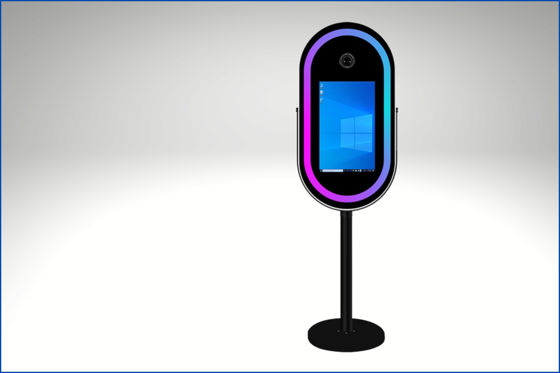 A sleek, modern photo booth with clean setup and vibrant LED lighting. Thanks to mirrorless camera. It's perfect for capturing high-quality photos at events, parties, and brand activations. Compact, stylish, and designed to stand out while delivering a fun, interactive experience.